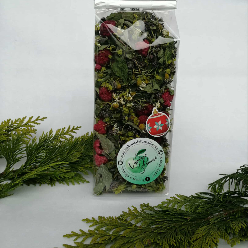 Sudedamosios dalys: juodųjų serbentų lapai, čiobreliai, ramunėlės, šaltmėtė, klevų žiedai, avietės.
