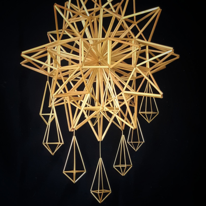 50 cm skersmens ruginių šiaudų sertifikuotas tautinio paveldo dirbinys, gali būti puoštas gintaru ir šiaudiniais liktariukais, kabinamas prie lubų erdvėje, kurioje galėtų laisvai suktis.