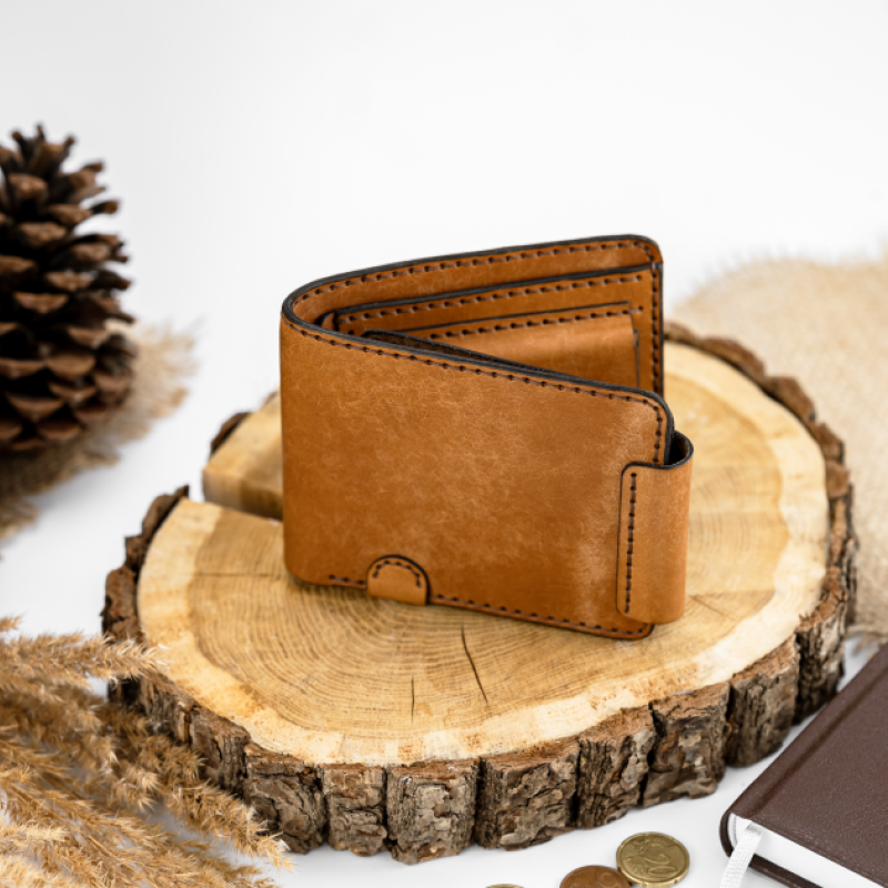 Piniginė dygsniuota rankomis, pagaminta iš "Full-grain", augalinio raugo odos.