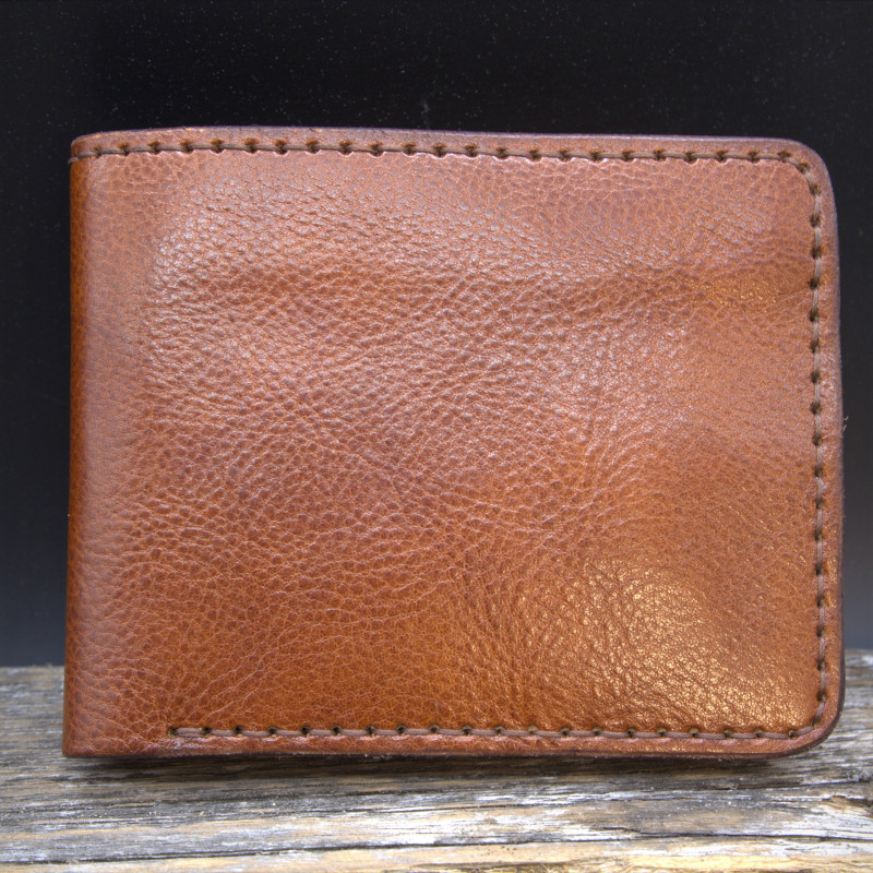Piniginė dygsniuota rankomis, pagaminta iš "Full-grain", augalinio raugo odos.