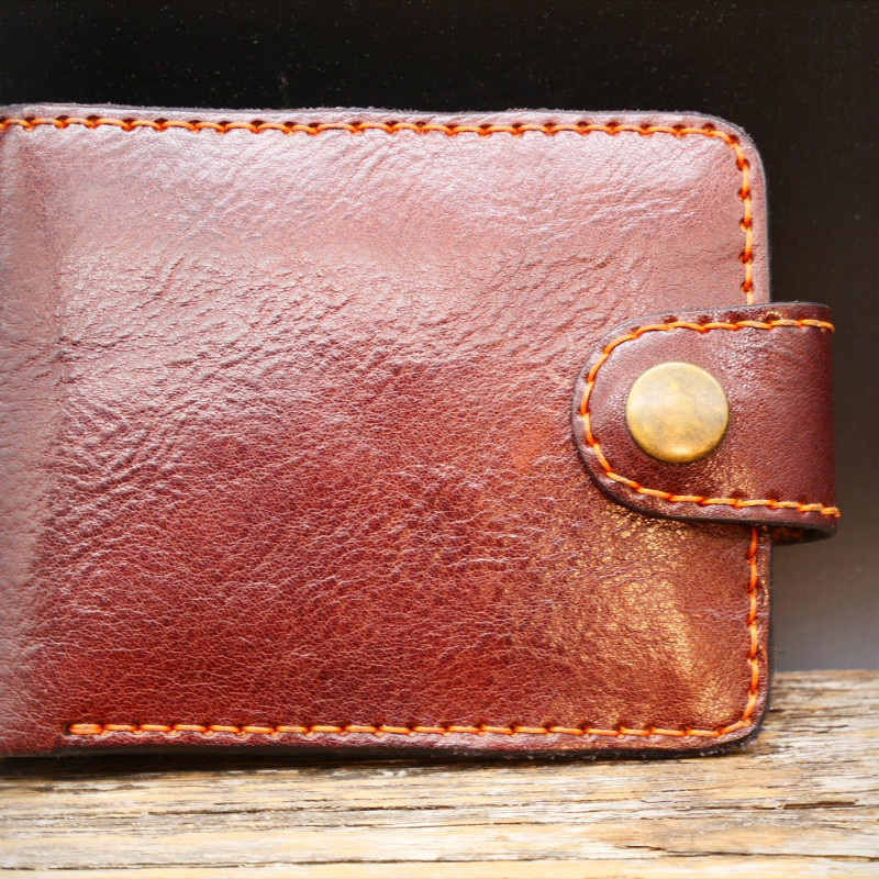 Piniginė dygsniuota rankomis, pagaminta iš "Full-grain", augalinio raugo odos.
