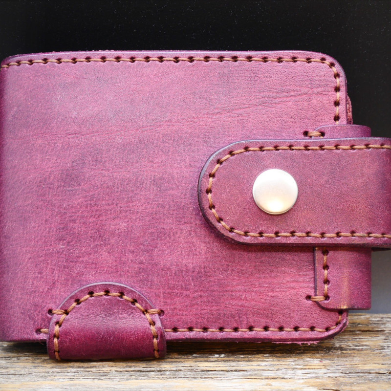 Piniginė dygsniuota rankomis, pagaminta iš "Full-grain", augalinio raugo odos.