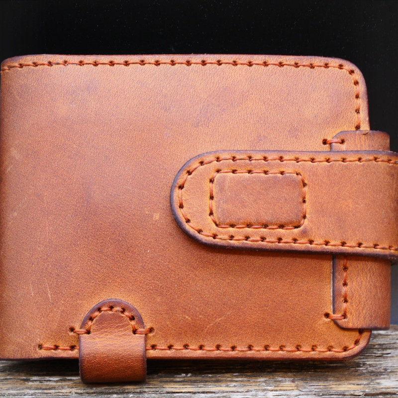 Piniginė dygsniuota rankomis, pagaminta iš "Full-grain", augalinio raugo odos.