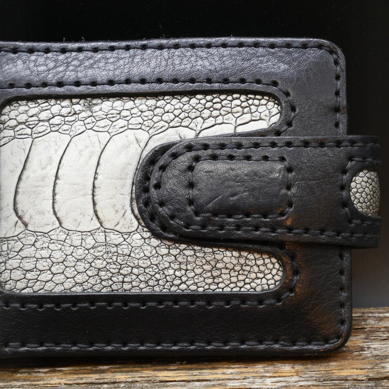 Kombinuotos dvi odos, egzotinė stručio kojos oda su stambiojo raguotojo gyvulio.