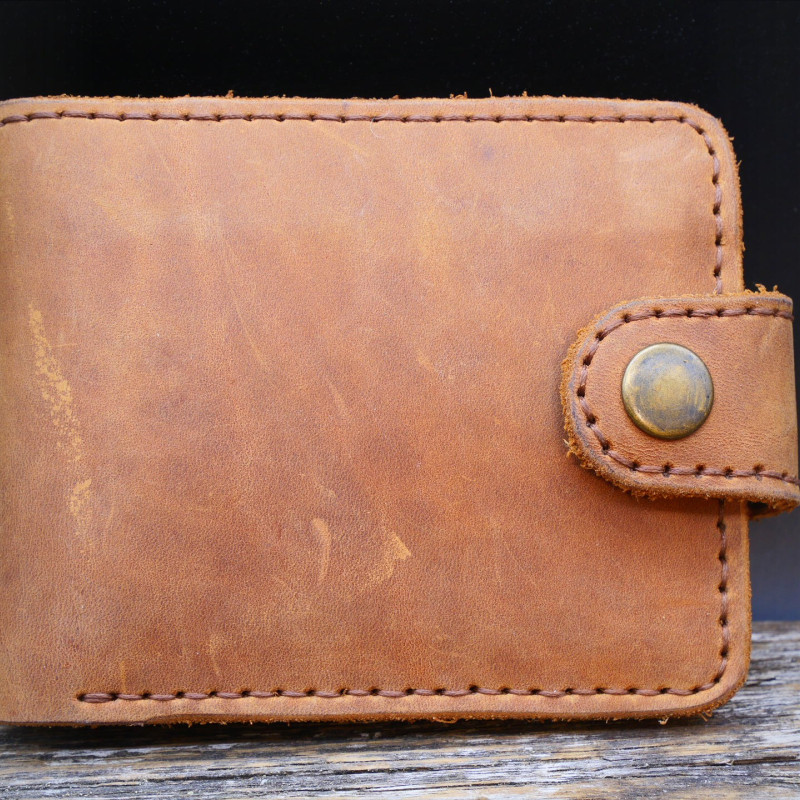 Piniginė dygsniuota rankomis, pagaminta iš "Top-grain", mineralinio raugo odos.