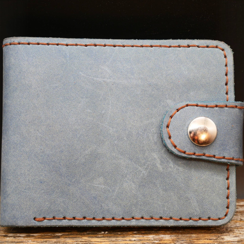 Piniginė dygsniuota rankomis, pagaminta iš "Top-grain", mineralinio raugo odos.