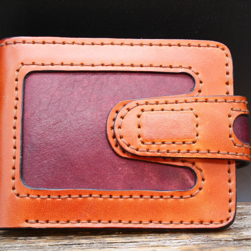 Piniginė dygsniuota rankomis, pagaminta iš "Full-grain", augalinio raugo odos.