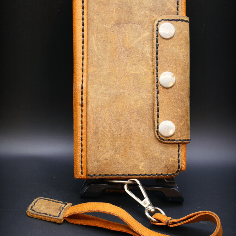 Delninnukė dygsniuota rankomis, pagaminta iš "Top-grain", mineralinio raugo "Crazy horse" odos.