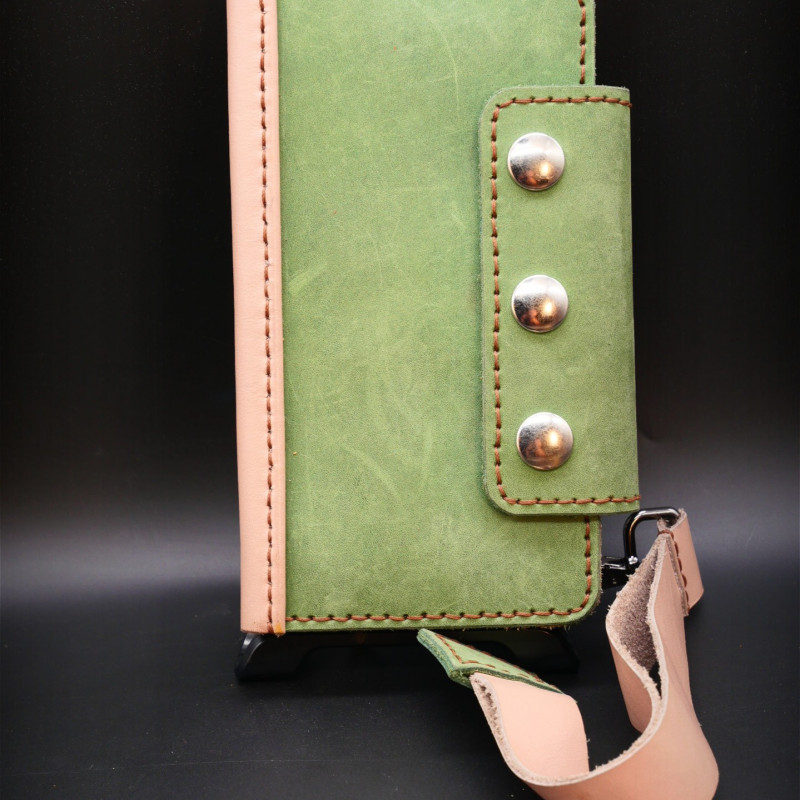 Delninnukė dygsniuota rankomis, pagaminta iš "Top-grain", mineralinio raugo "Crazy horse" odos.