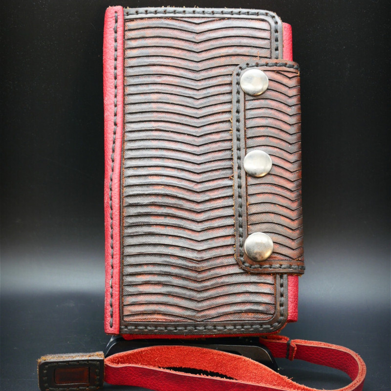 Delninnukė dygsniuota rankomis, išorė pagaminta iš "Full-grain", mineralinio raugo odos, vidus iš mineralinio raugo.
