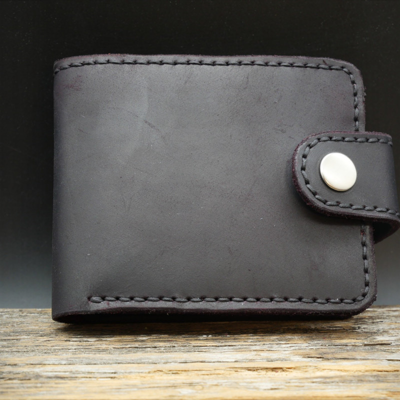Piniginė dygsniuota rankomis, pagaminta iš "Top-grain", mineralinio raugo odos. Unikalus įpatumas šio gaminio, kad ši uoda dažyta papildomai rankomis juodais dažais, o gamykloje dažyta bordine spalva. Laikui bėgant bus išgaunamas "trinamos odos" efektas, kai pradės ryškėti bordinė spalva.