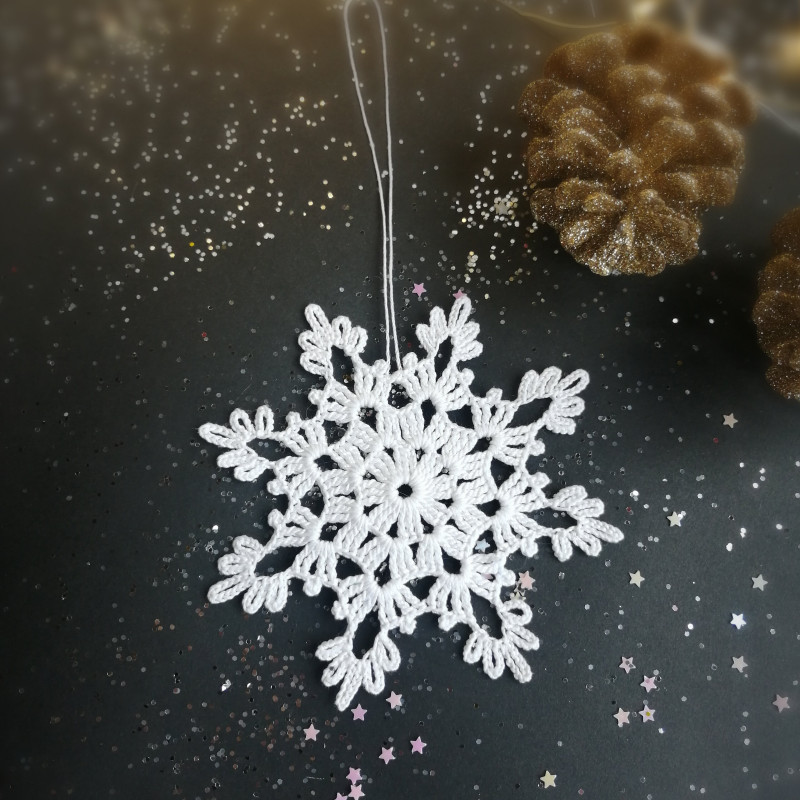 Rankų darbo nerta medvilninė snaigė.  Skersmuo - 11cm.