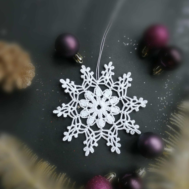 Rankų darbo nerta snaigė. Medvilnės siūlai. Skersmuo - 11 cm.