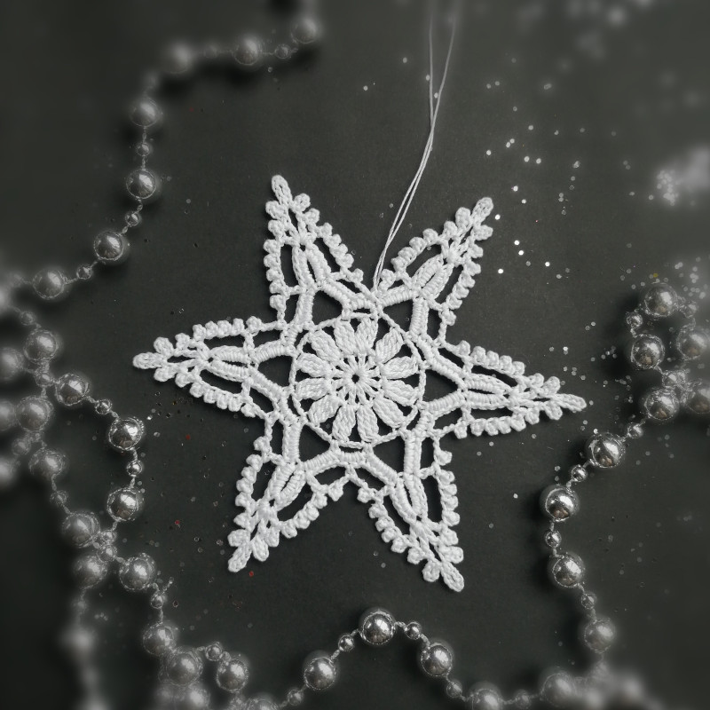 Rankų darbo nerta snaigė. Medvilnės siūlai. Skersmuo - 12 cm.