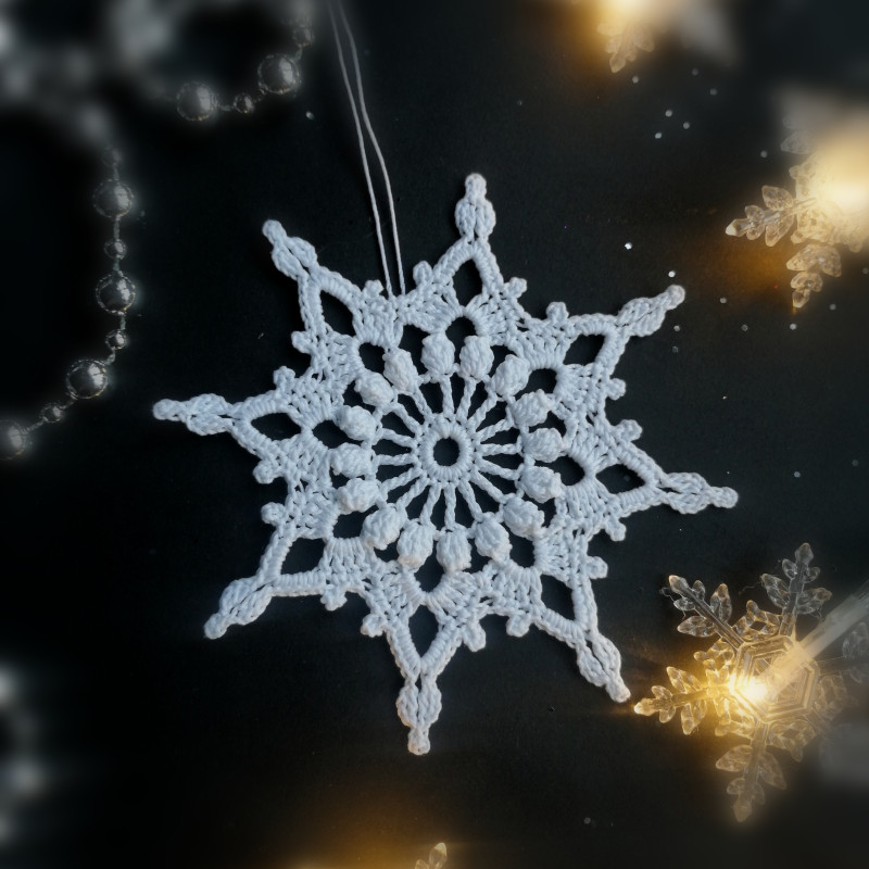 Rankų darbo nerta snaigė. Medvilnės siūlai. Skersmuo - 11 cm.