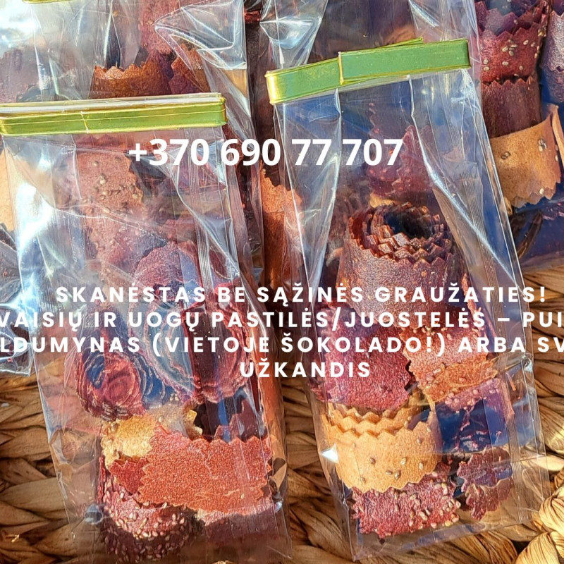 P.S. Mūsų pastilės puikiai tinka ir vaikams, ir suaugusiems, ieškantiems gardaus, bet sveiko pakaitalo įprastiems saldumynams. Tai natūrali energija!